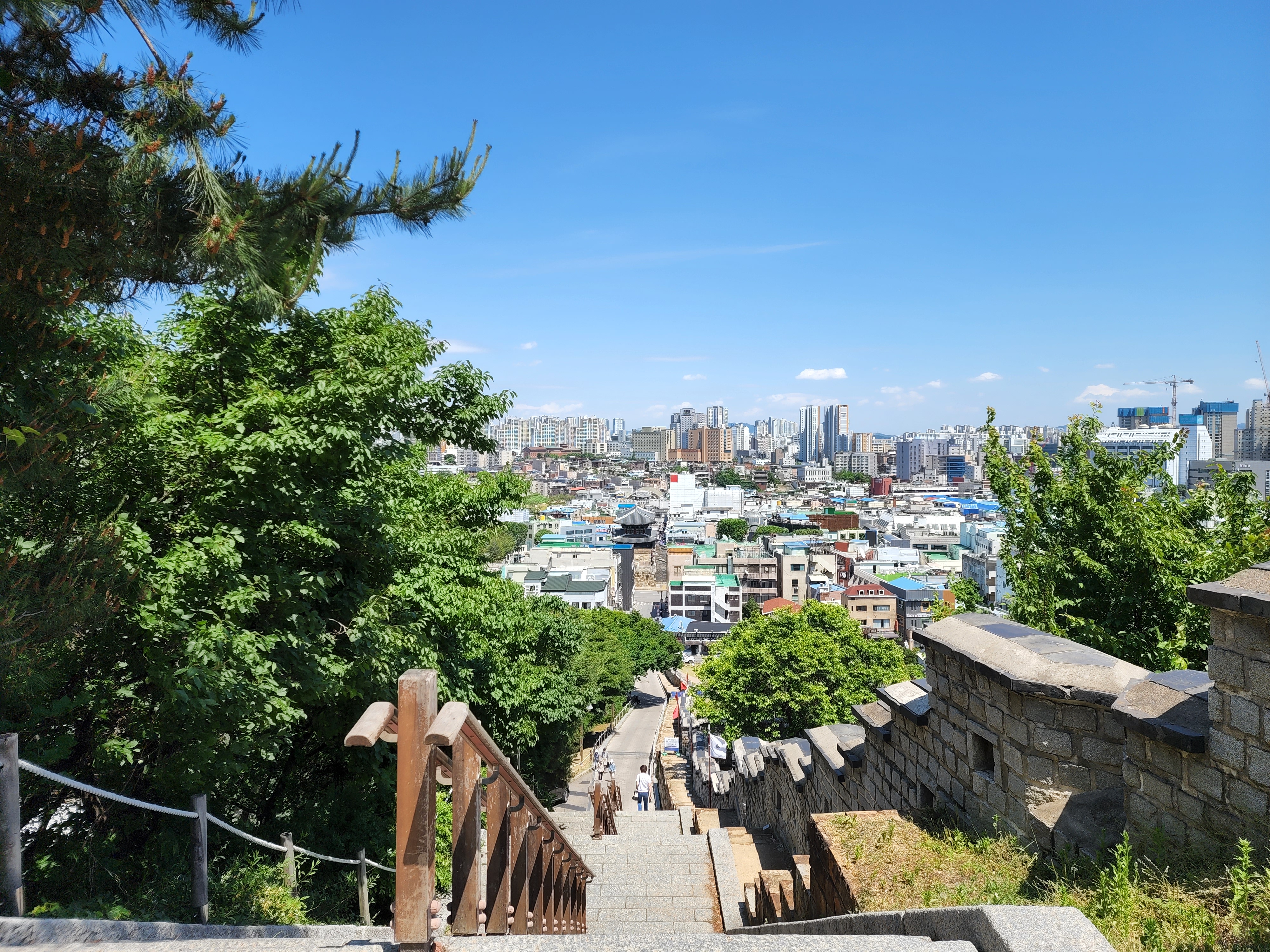 둘레길에서 딱 수원 화성행궁이 보이는 장소인데, 뒤에 아파트들과 대조되는 모습이 어색하면서도 한편으론 역사 속에 살고 있는 느낌이 들어 신기했습니다.