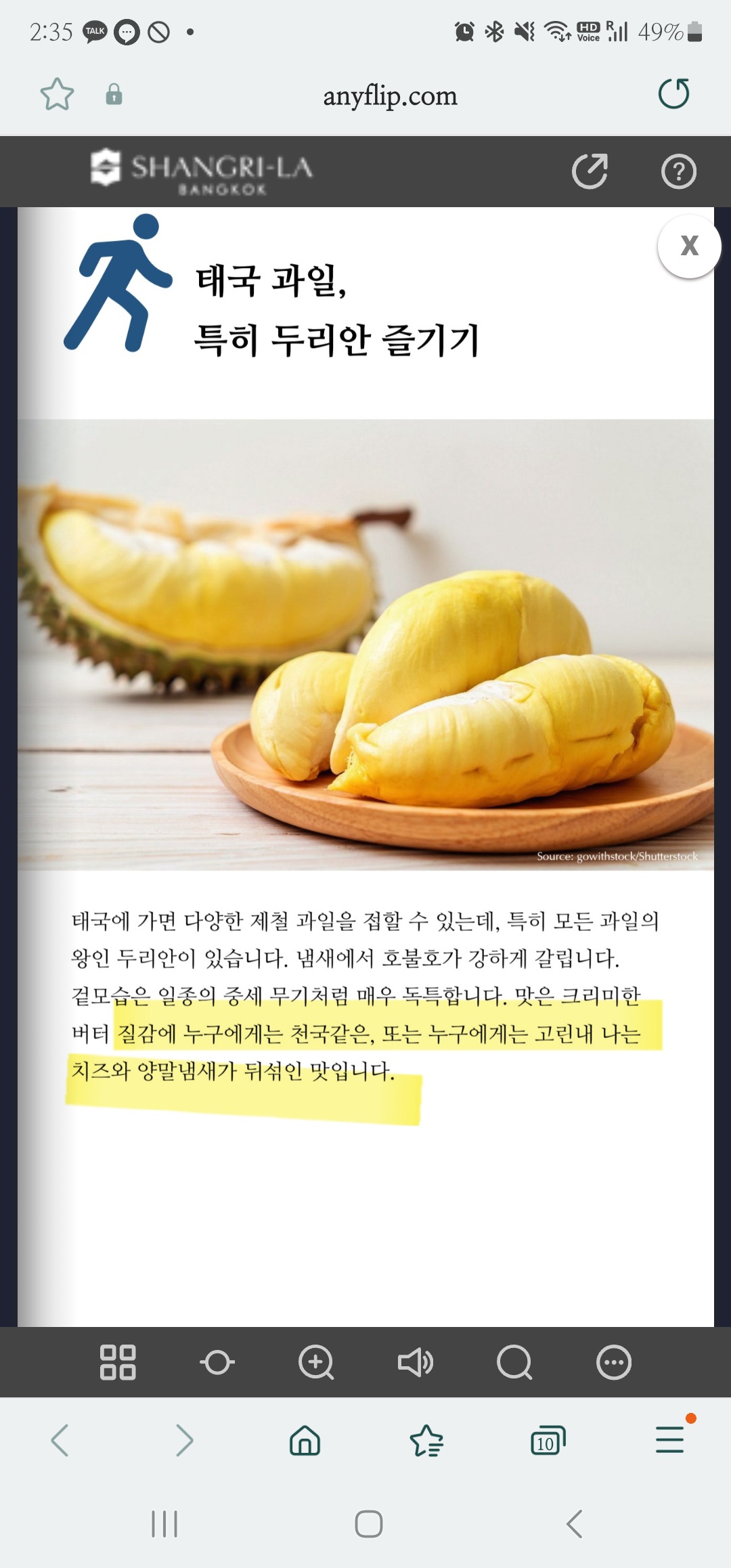 참고로 두리안에 대한 설명이 샹그릴라 호텔 여행 정보에도 적혀있는데,