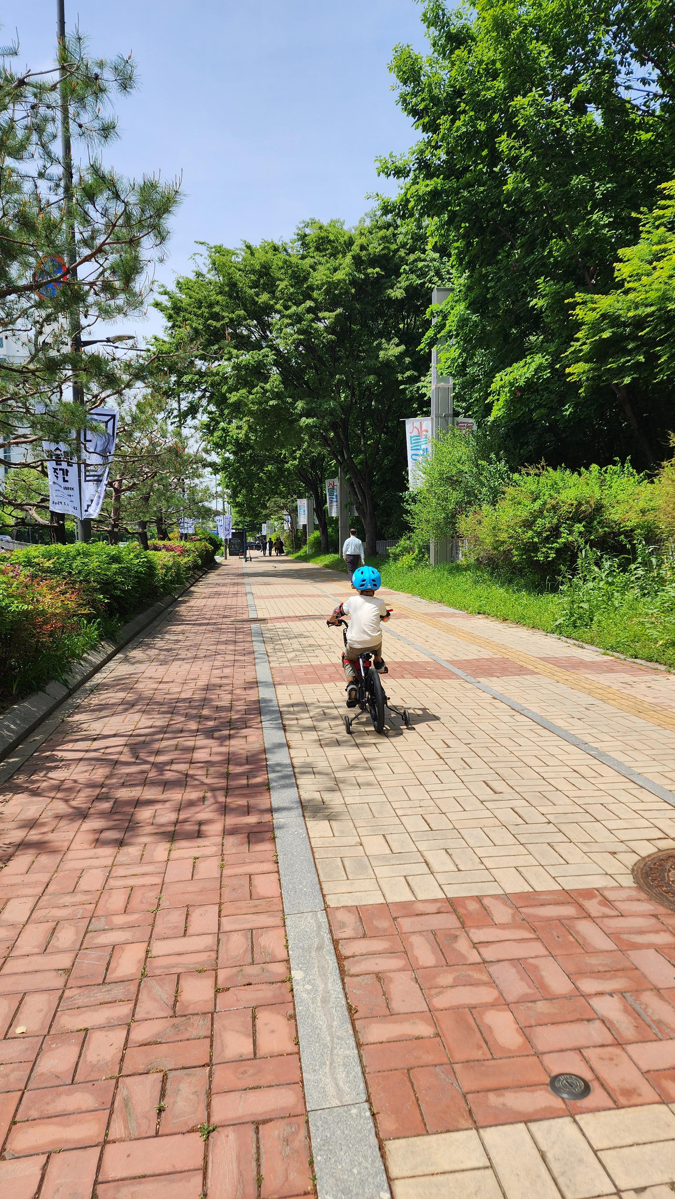 공원 내에선 자전거 타기가 금지여서, 공원 앞부터 국립중앙박물관 대로변에서 열심히 자전거를 탔고요